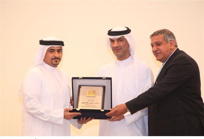 العويس الشهادات والدروع للفائزين والمكرمين خلال الحفل الذي اقيم بقاعة الفكر في مركز