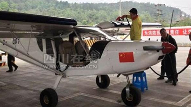 طائرة صينية صغيرة للهبوط على الطريق العام في شمال مقاطعة "سيشوان" ، بالقرب من محطة