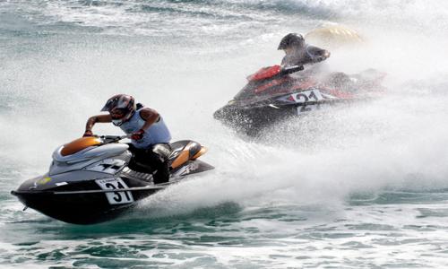 كرم الشيخ خليفة بن سلطان بن خليفة آل نهيان ومعه الشيخ محمد بن خليفة آل خليفة من مملكة البحرين أبطال سباق الإمارات للدراجات المائية في جولته الثالثة والذي أقيم مساء اليوم برعاية الشيخ سلطان بن خليفة آل نهيان مستشار رئيس الدولة رئيس مجلس إدارة نادي أبوظبي الدولي للرياضات البحرية.
