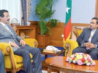 استقبل رئيس جزر المالديف عبدالله يمين عبدالقيوم في العاصمة مالييه في العاصمة مالييه رئيس مجلس إدارة موانئ دبي العالمية سلطان أحمد بن سليم، بحضور وزيرَ التنمية الاقتصادية في المالديف محمد سعيد، وعبدالله أمين، وزير مكتب الرئيس.