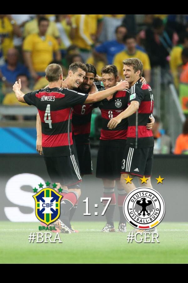 وتعتبر هذه الخسارة الأولى في تاريخ المنتخب البرازيلي بمونديال كأس العالم، حيث تعد أول مرة يتلقى فيها منتخب البرازيل سبعة أهداف بالمونديال.
