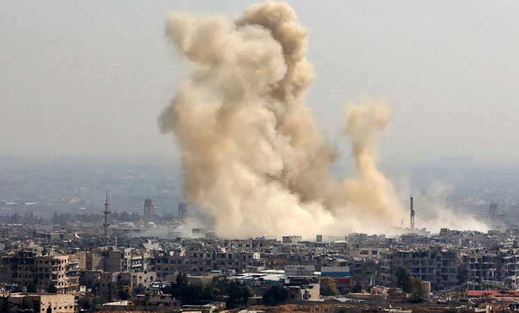 وهي اعنف حملة قصف جوية تشهدها هذه المنطقة التي يتواجد فيها زهاء 400 الف مدني، منذ بدء النزاع في سوريا قبل سبع سنوات.