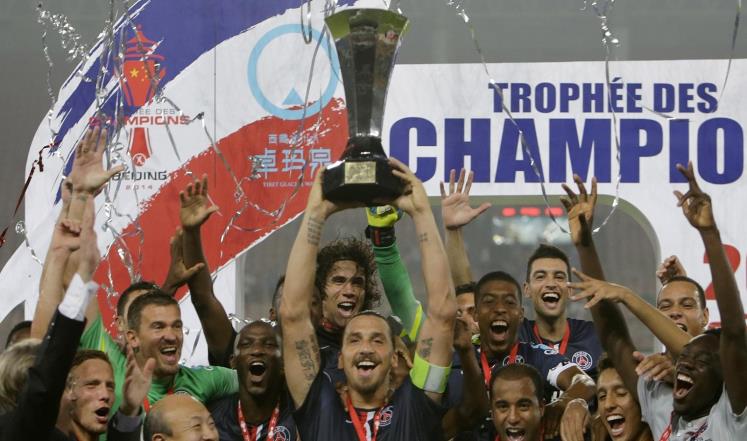 فاز باريس سان جرمان – بطل الدوري الفرنسي لكرة القدم – ببطولة كأس الأبطال "كأس السوبر الفرنسية" بعد وزه على غانغان 2-صفر السبت على ملعب العمال في بكين.